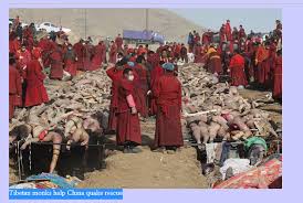 walk past the homes of Rohingya Muslims set on fire by Buddhist extremists in a